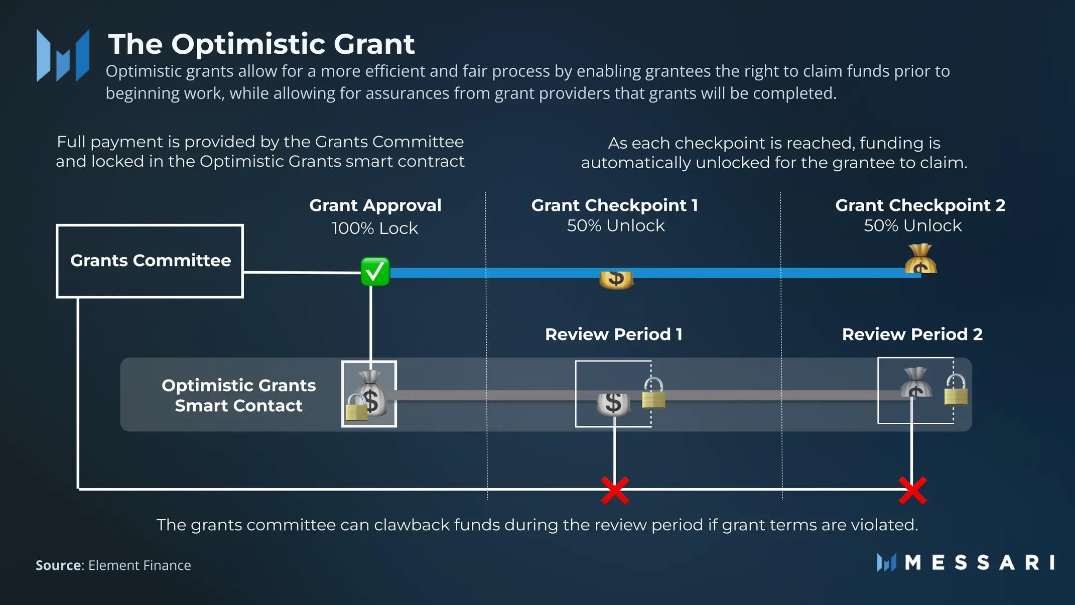 As more DAOs join and begin to collaborate in the space, they could someday turn to a central source for funding grants and ecosystem initiatives. Rather than working independently, DAOs could increase capital efficiency by co-sponsoring mutually beneficial grants, working groups, or development. For example, DAOs could create an ecosystem-wide public goods group, where DAOs can co-fund the initiative and provide a contributor that reflects their specific mission and values.
