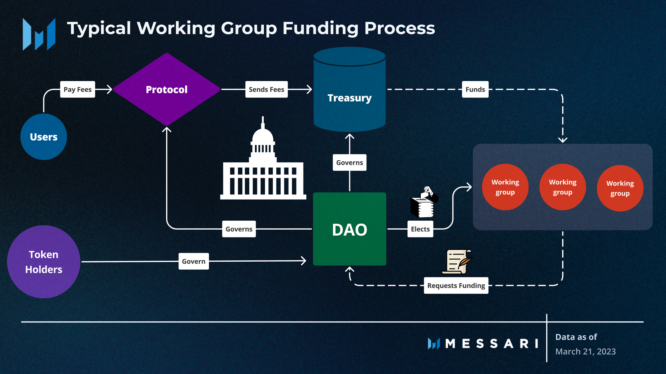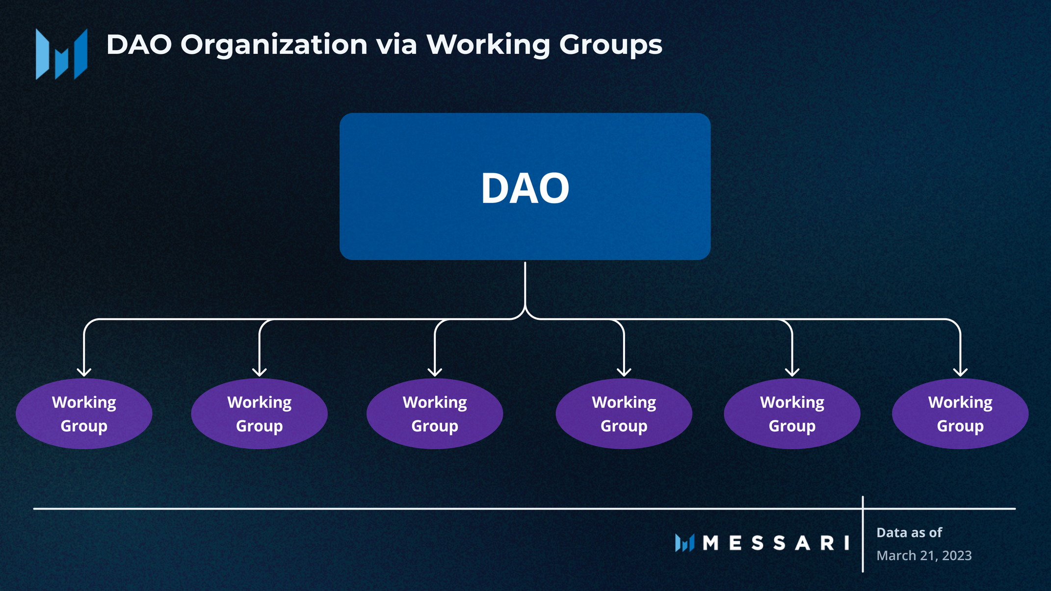 - As DAOs have evolved, many have adopted the working group structure to distribute internal labor.