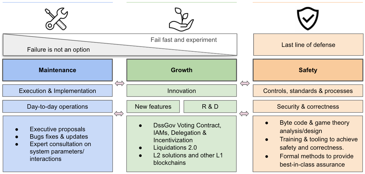 Comprising 16 full-time employees, the PE unit’s core responsibility “is to extend the functionality of the Maker protocol, assist with the maintenance and operation of existing smart contracts and ensure the safety and correctness of protocol design and implementation.”